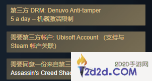 日前,《刺客信条:影》更新的Steam详情页中确认本作将采用Denuvo防篡改技术,并提出了需关联育碧账号的要求。