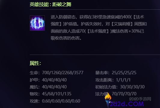艾瑞莉娅在队伍里是有着不错的抗伤能力,技能释放只需要70法力值,技能期间自身是处于防御姿态。三秒内有着根据法术强度影响的护盾,在护盾被击破或者效果结束后,艾瑞莉娅就会对周围敌人造成伤害,护盾吸收的伤害值越高,本次技能的伤害也就会越高。前期可以带上板甲、救赎等肉装,能让其有着很好的抗伤能力。