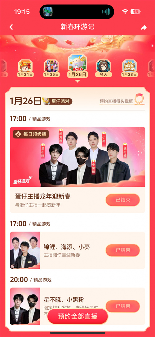 在活动主会场,抖音游戏从1月20日到2月9日横跨大半个春节假期,推动多款精品游戏与众多明星/头部达人实现梦幻联动,持续带来多场精彩的春节特别节目,赚足了用户眼球。活动期间,不同游戏和多元节目轮番上阵,用户天天有惊喜,游戏厂商也通过抖音游戏提供的直播大卡和品牌活动专区资源,快速辐射到了更多潜在用户群体。