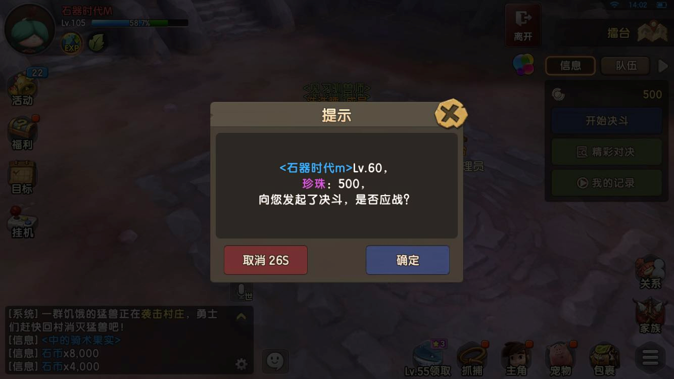玩家到奇喀喀村找到擂台管理员NPC后,进入擂台的活动场景中,可以发起决斗的相关操作。