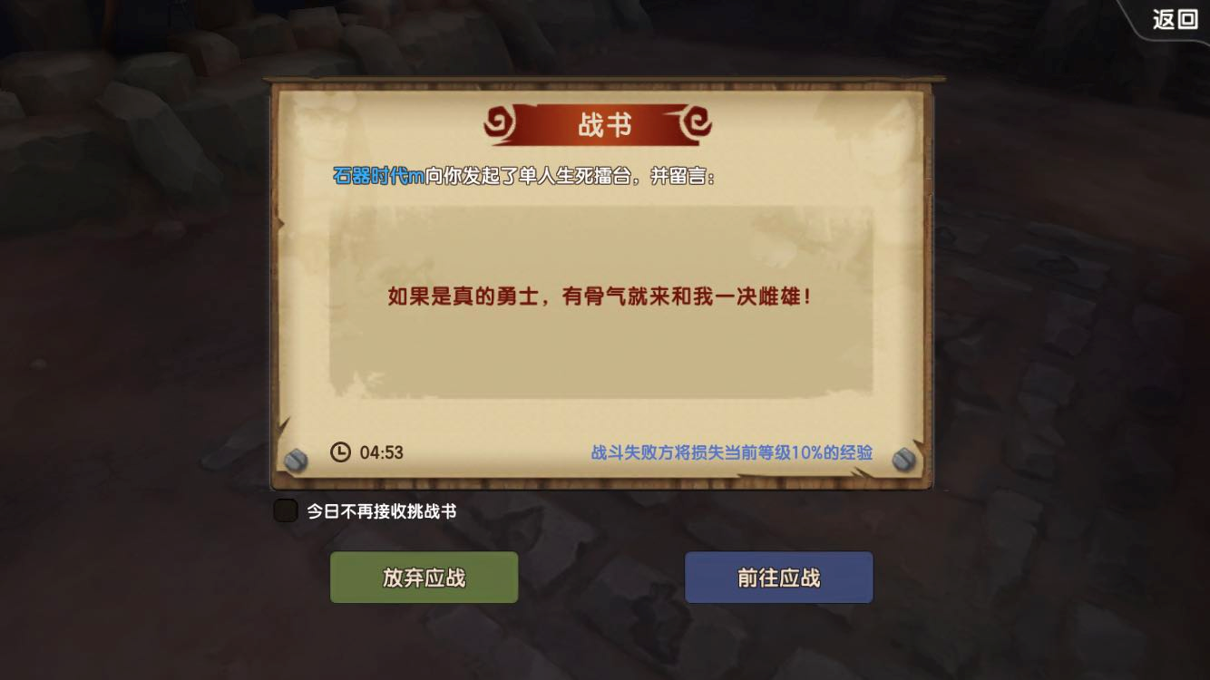 被挑战者在收到战书以后可以对此选择拒绝或应战。如果应战将进入生死决斗的对战,过程选择无法撤退。