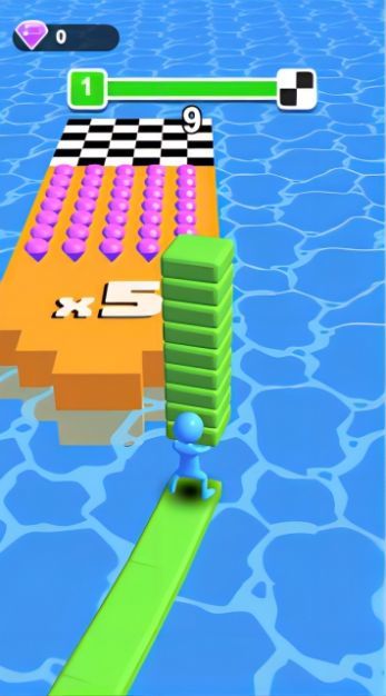 砖块大师水上跑是一款十分有趣的跑酷休闲手游,在这款游戏中,玩家会成为一名砖块大师,手中拿着砖块进行铺路一边跑,游戏中会有增加砖块的方式,玩家到终点后剩余的砖块越多就会获得越高的分数。同时玩家还可以收集地图上的钻石来增加额外的分数,感兴趣的朋友快来下载体验吧。