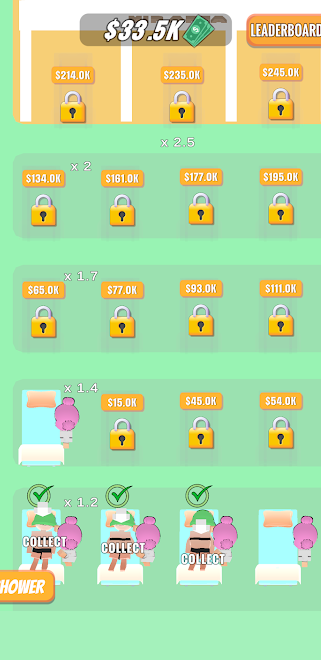 3、解锁新的场景和地点,吸引更多的客人,并通过他们的评论和重复率来评估水疗中心的运营情况。
