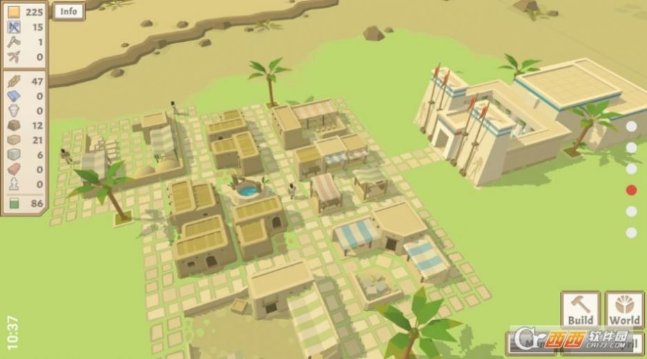 1、玩家将扮演古埃及的建设者角色,通过建造城市、建造神庙、探索挖掘宝藏等方式发展自己的城市。