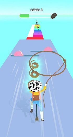 3、玩家可以控制牛仔女孩进行跑酷,并利用手中的绞索来获得各种道具和资源奖励。