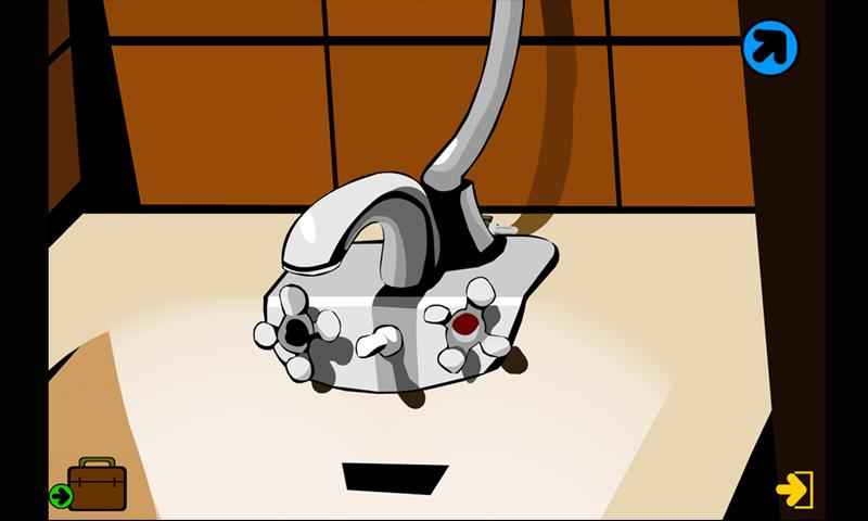 43.点上方向右的箭头,点墙上的梯子,看剧情动画(梯子和螺丝刀掉下来),点楼梯上的箭头,点左侧的门。
