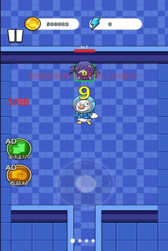 1、游戏的核心玩法是探索和冒险。 玩家需要在每个关卡中熟练地引导鸭子穿过各种障碍和敌人。