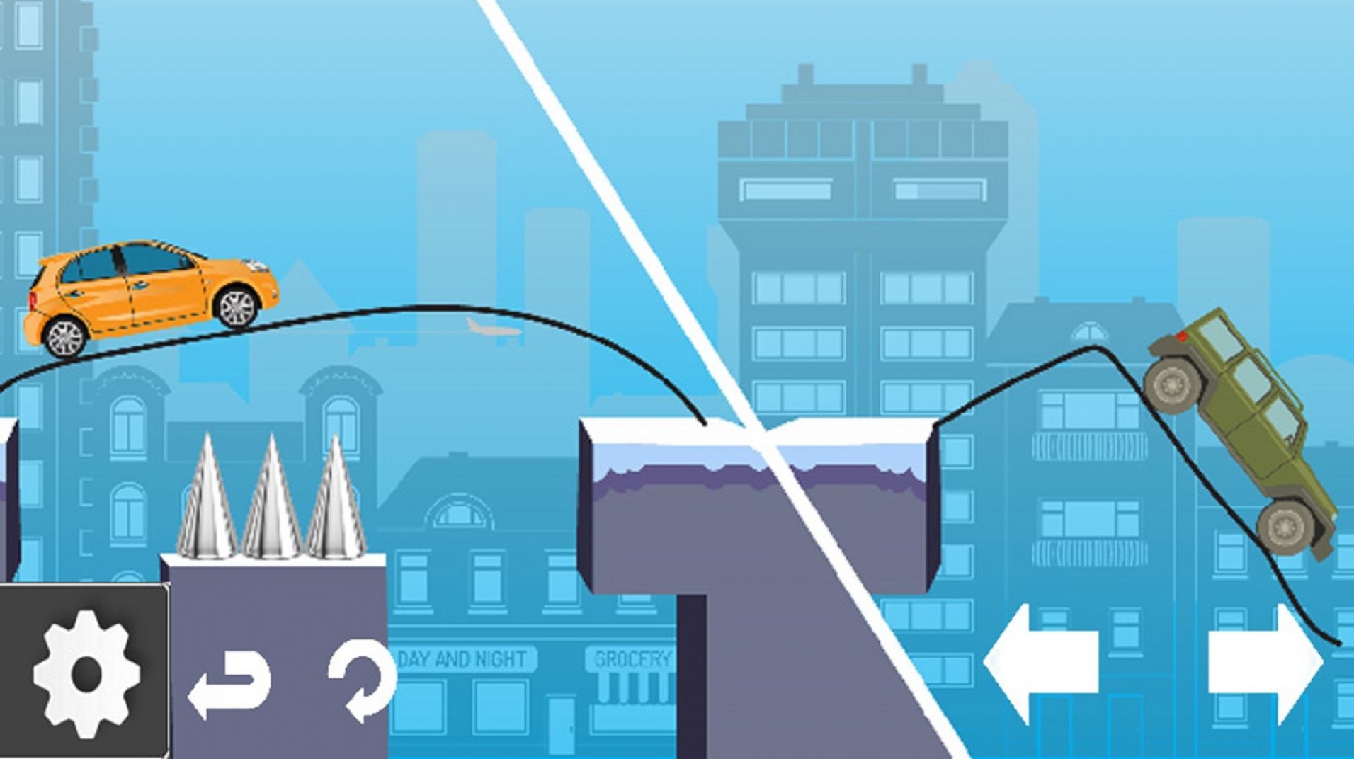 1、玩家需要画一条连接线,规划最佳行驶路线,通过控制车辆到达终点;
