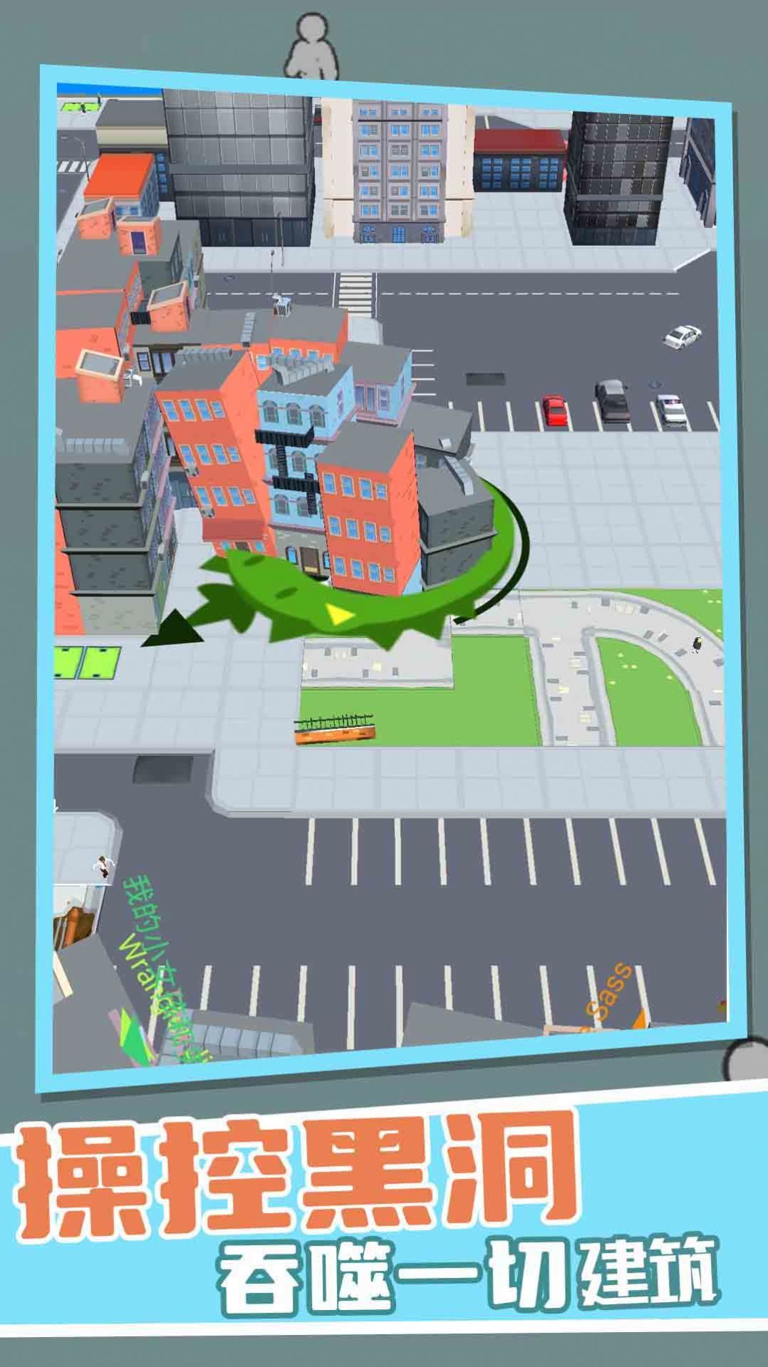 主要场景是城市中出现的洞口,你需要灵活去控制洞口完成吞噬闯关,