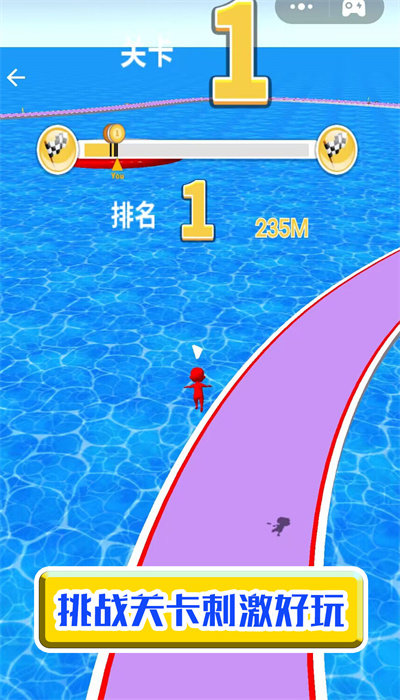 1、操作橡皮人躲避障碍物,收集道具,冲刺到底,体验刺激。
