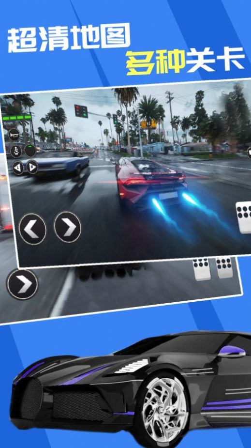 2、逼真的漂移音效,爆炸性的背景音乐和轰鸣的发动机声,感受激情的极速赛车。