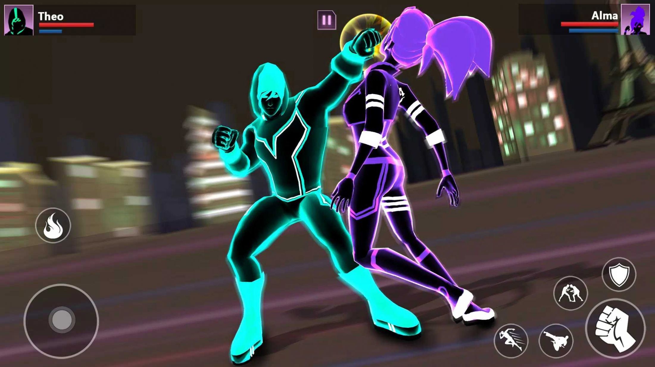 3、使用不同的招式攻击对手,从高高的飞踢到毁灭性的拳打,每次攻击都非常刺激。