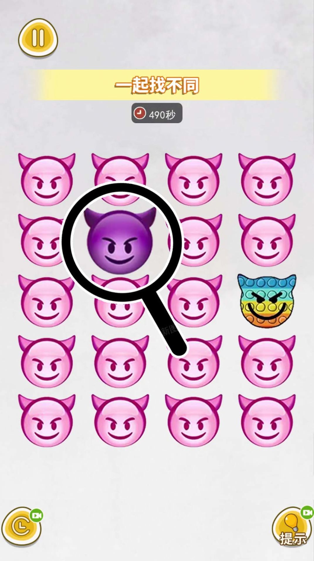 1、游戏中的图片表情多种多样,你需要找到与其他表情不同的表情。