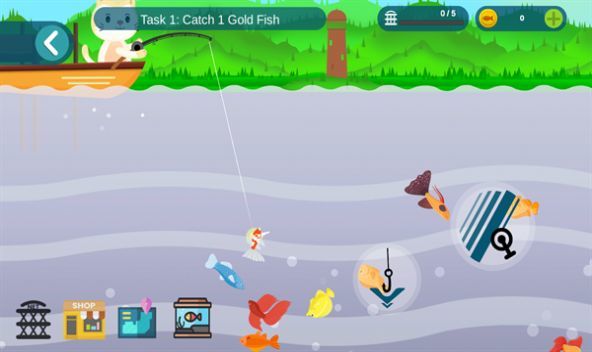 2、捕获一定数量的鱼或完成任务后,您可以使用获得的金币购买更好的钓鱼装备。