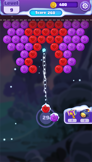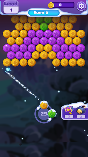 1、精准的射击:在泡泡射手游戏中,玩家能够精确地操控发射的方向和角度,只需轻轻点击屏幕,就能够发射出彩色的泡泡。