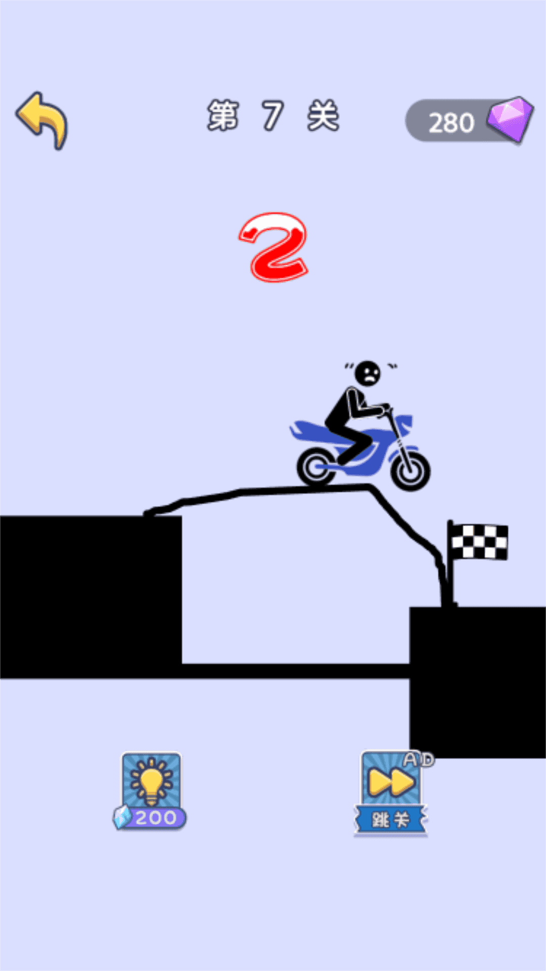 1、经过画笔操作画线,并树立桥梁、楼梯、通道等,帮助火柴人度过每一关;