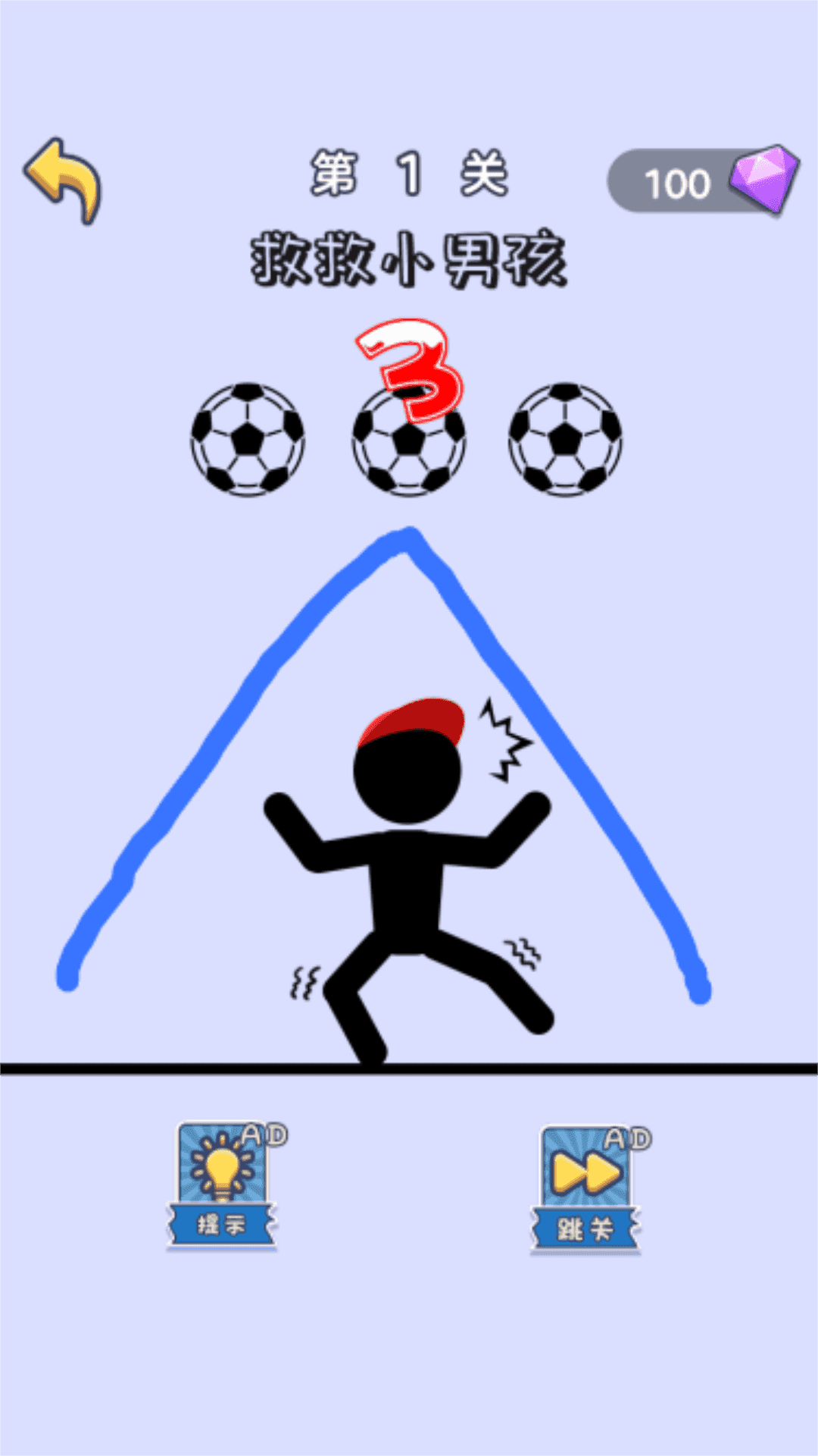 1、共同的画笔玩法,经过手指画线帮助火柴人联络过关;