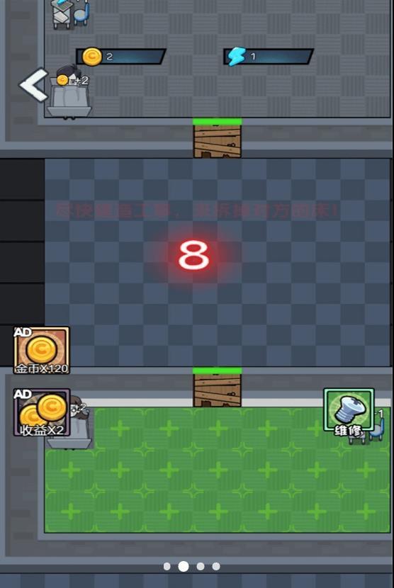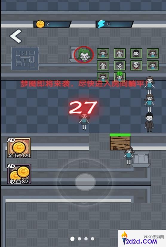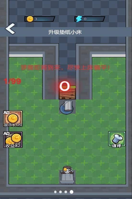 公司躺平大冒险游戏的玩法类似猎梦者,玩家在游戏中,能够解锁的人物都十分有个性,玩家进入游戏后,需求挑选自己的房间,然后经过躺平的方式取得金币,金币能够用来加固门,抵挡怪物的进犯,游戏后期,玩家还能够解锁炮台,主动进犯怪物。
