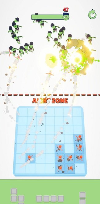 火箭打僵尸游戏的玩法非常风趣,玩家能够通过不断的发射火箭炮的方法,取得终究的成功。