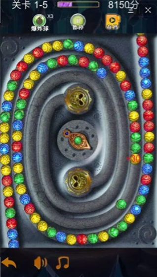 3、有5种特殊背景和经典风格,三颗或三颗以上同色的弹珠就会被淘汰,轻松体验射击的乐趣。