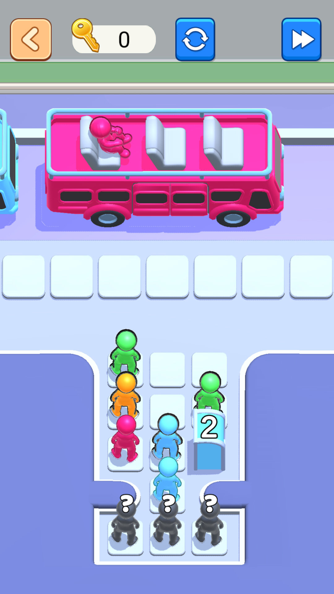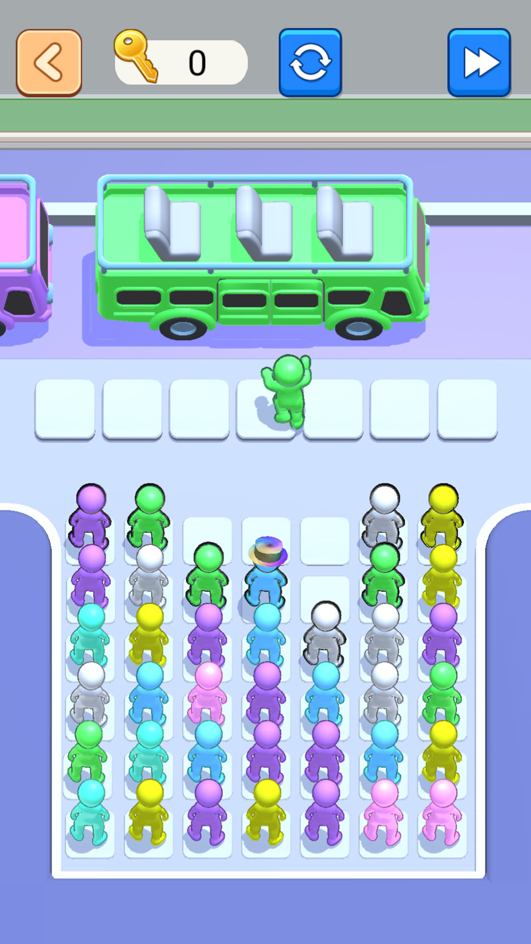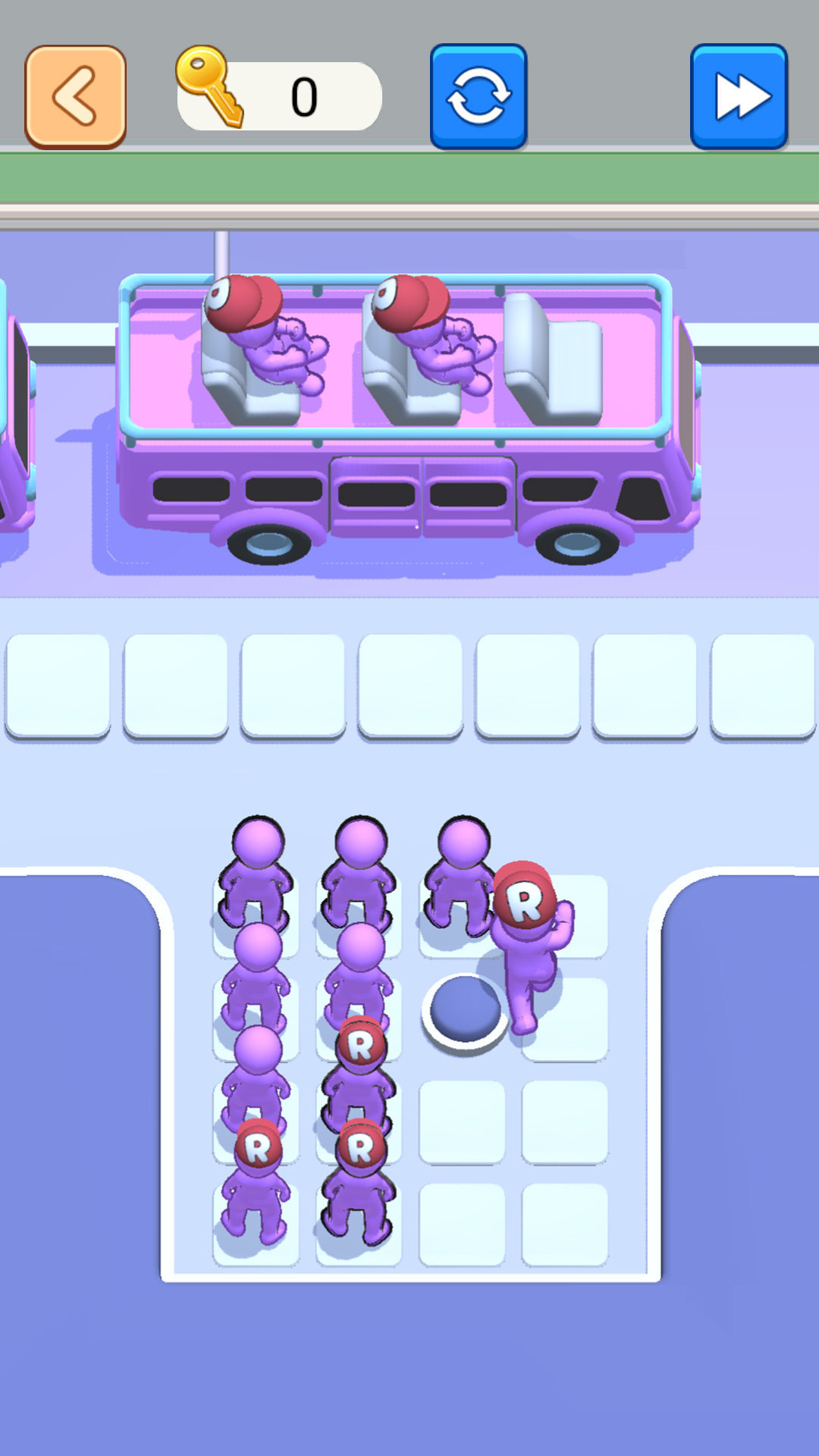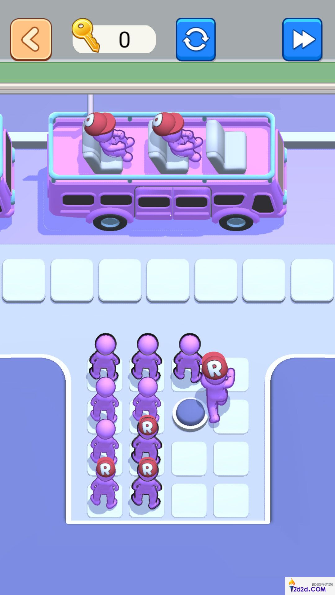 3、不同颜色的小人只能乘坐对应颜色的车子,如果玩家放错了方位,小人将无法上车。