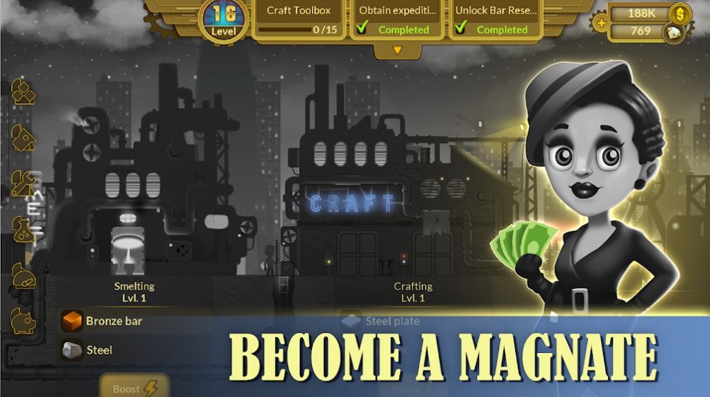 3、闲置的工业模拟游戏,它融合了冶炼、制作和资源管理来赚取利润并推进你的城市。