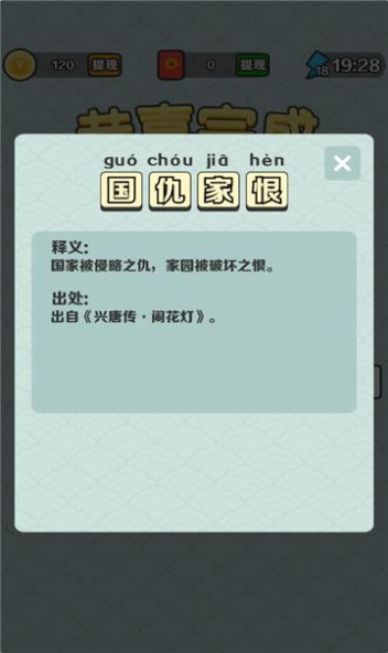 2、对于生僻字和特殊的成语,可以使用提示道具,获得关键信息;