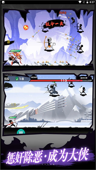 火柴人出击是一款控制和火柴人动作挑战闯关的游戏,可以在游戏关卡任务中解锁着火柴人的技能,体验着更多刺激的对决挑战,还会有丰富的武器道具可以使用,获得的百种装备可以挑战闯关,面对更强的敌人也可以近距离格斗,喜欢玩这类游戏的玩家们快来下载吧!