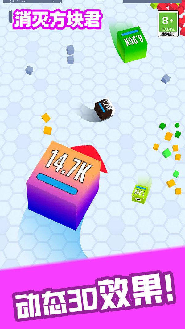 消灭方块君是一款消除闯关简单的小游戏,在每轮游戏的关卡内就可以掌握简单消除方式,还能更快的挑战完成闯关任务,收集更多小方块消除形成一个大方块,消灭掉更多的小方块就能强大自己的方块体现,还有搞笑的方块皮肤选择,喜欢玩这类游戏的玩家们快来下载吧!