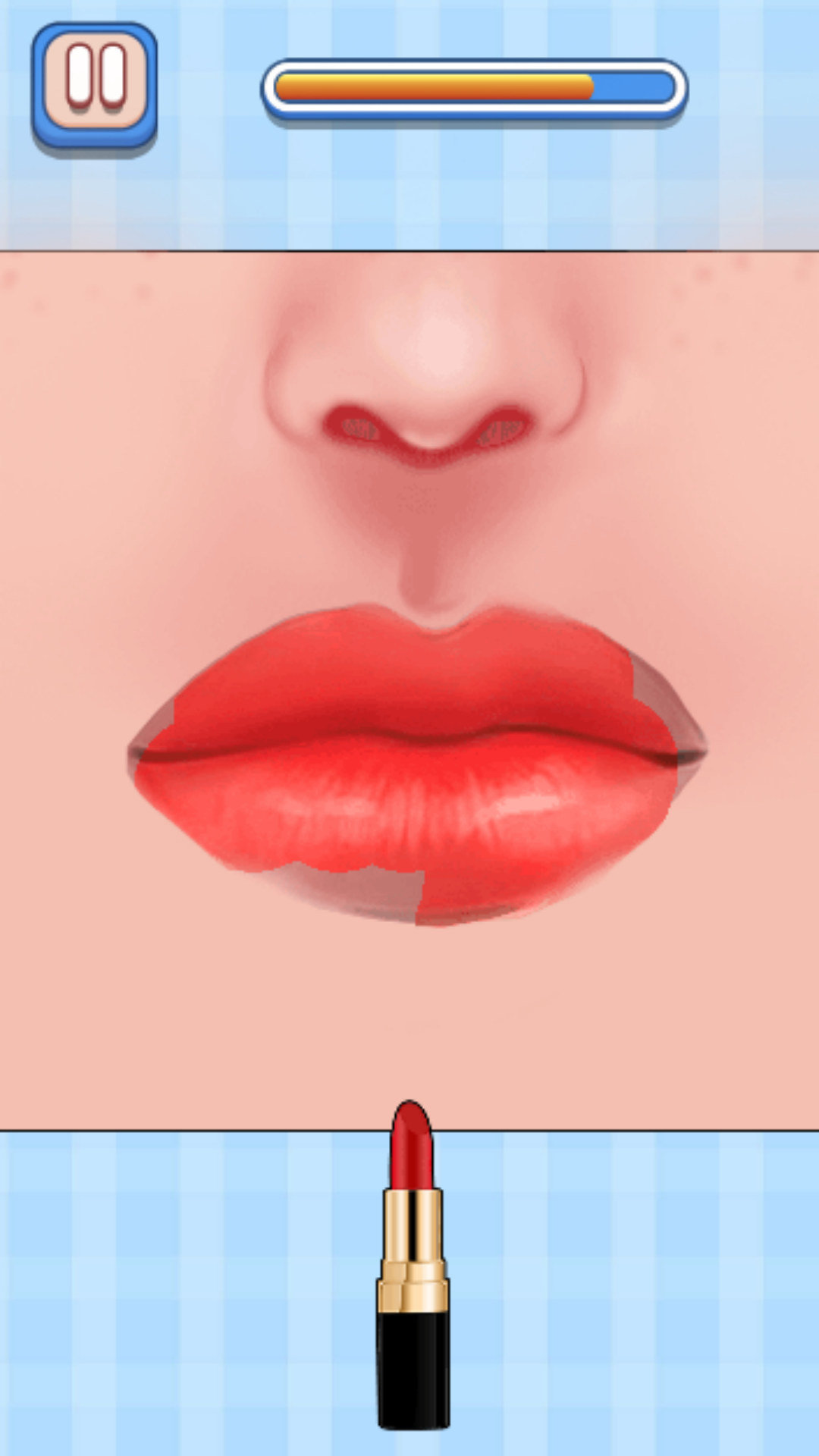 1、打造真实地涂口红美妆游戏,该游戏的主要玩法是在模特的嘴唇上涂抹口红,以使其获得最佳的妆容效果。