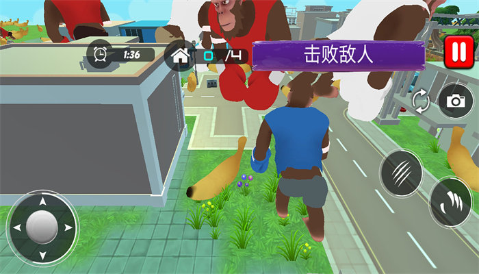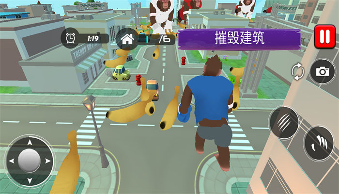 1、通过左右滑动控制猩猩灵活避开障碍物,沿路不断收集香蕉;