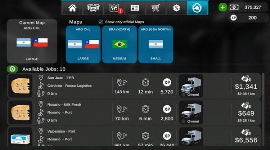 3、赚钱,购买新的卡车和拖车,选择你的工作和交付你的货物在一个开放的世界。