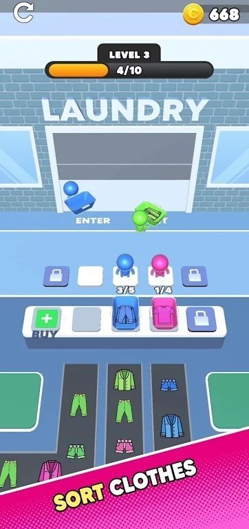 洗衣房分类(Laundry Sort)是一款非常好玩的休闲益智手游,在洗衣房分类(Laundry Sort)中玩家的任务就是要将各种类型的服装放置到不同的洗衣机中,在洗衣房分类(Laundry Sort)中会有多种不同的关卡等你挑战,并且每个关卡都有时间限制,随着关卡的提升难度也会不断增加哦,游戏还没有任何的广告弹窗,给你沉浸式的游戏体验,感兴趣的话快来下载试玩一下吧.