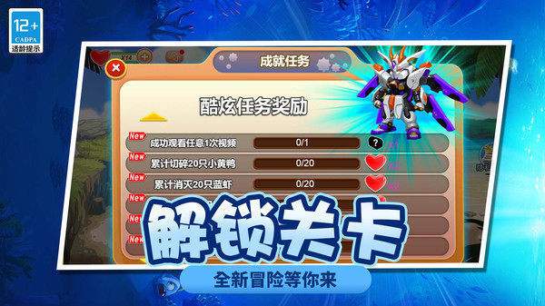 3.挑战各种任务,提升章鱼实力,成为海底霸主。