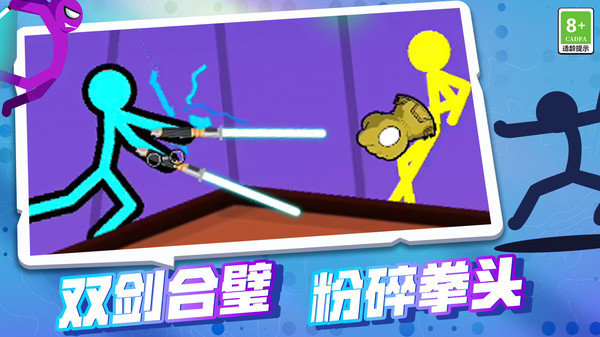 a、火柴人题材的简约风格,打击感十足的战斗效果;