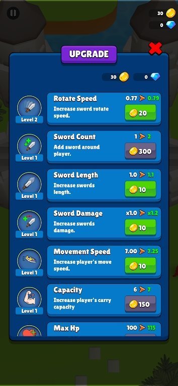 1.多种不同类型的刀刃可供选择和升级,增加攻击力和效果;