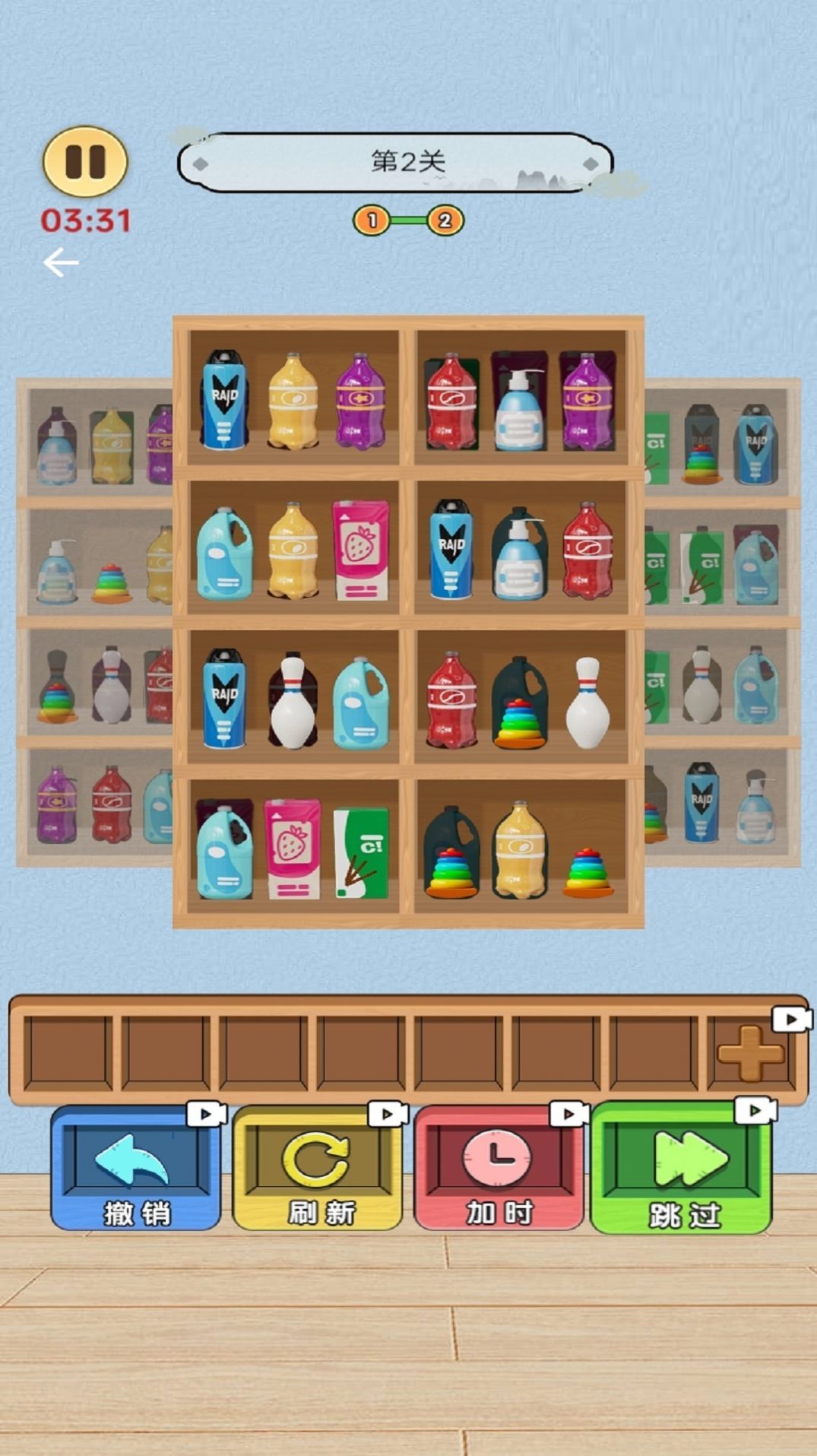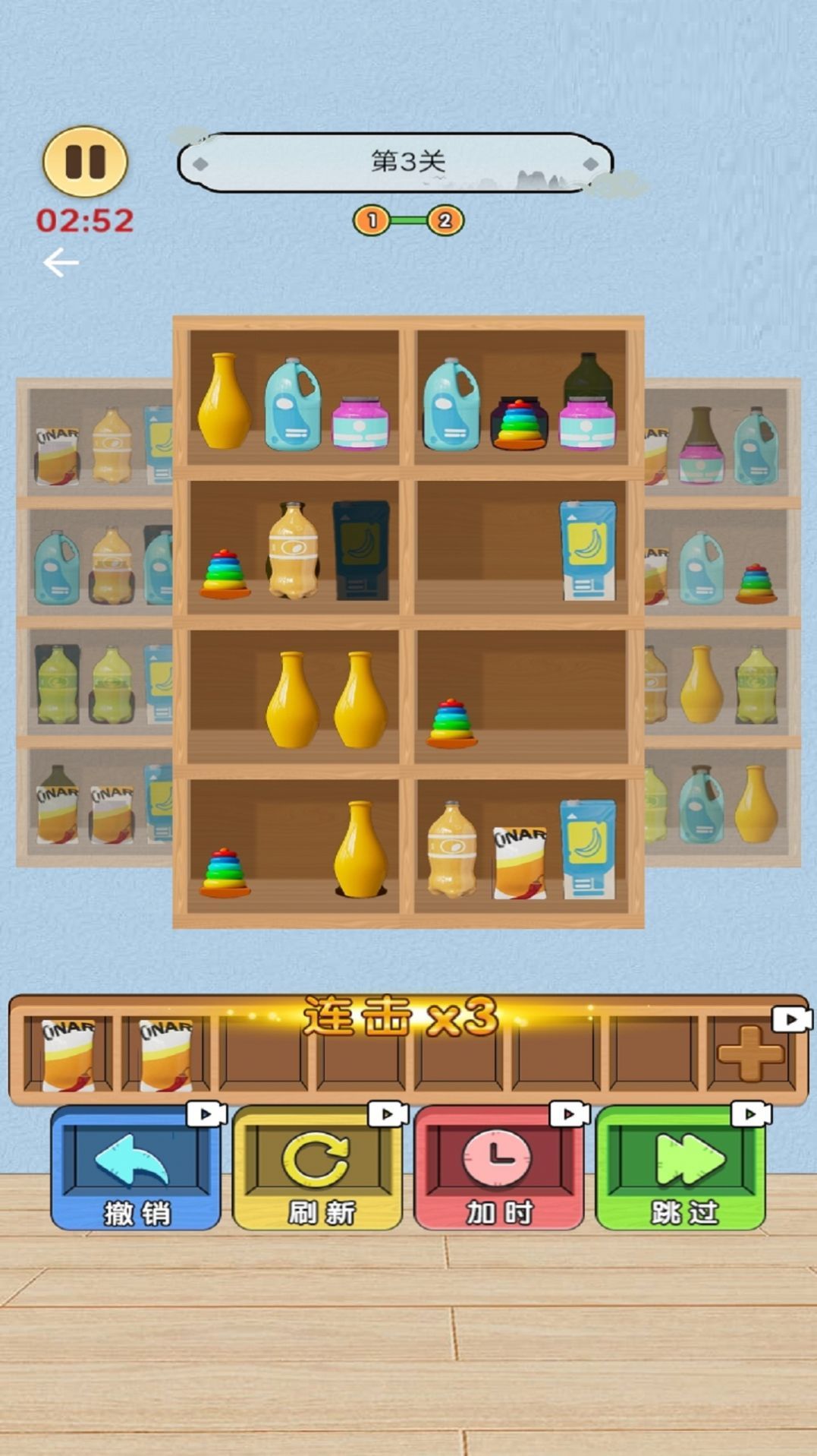2、旋转货柜消除,锻炼空间思维与决策能力。