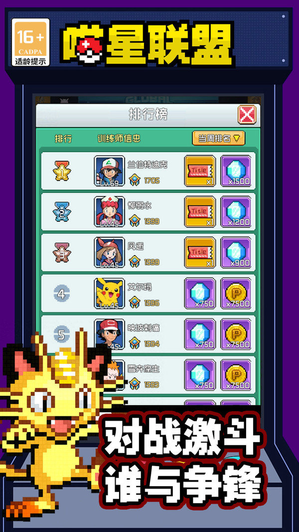 1.谁与争锋:对战激烈,每一个训练师都是非常强大的存在,尤其是榜上有名的训练师,更需要精心对待。
