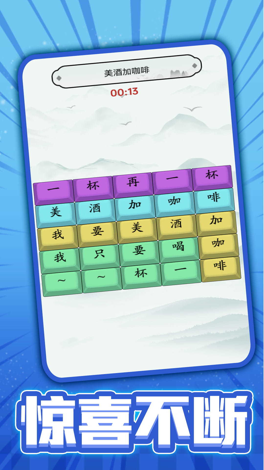 1、玩家需要根据游戏内的提示,通过滑动屏幕来连接相关的歌词。这不仅考验了玩家的记忆力,还增加了游戏的趣味性和挑战性。