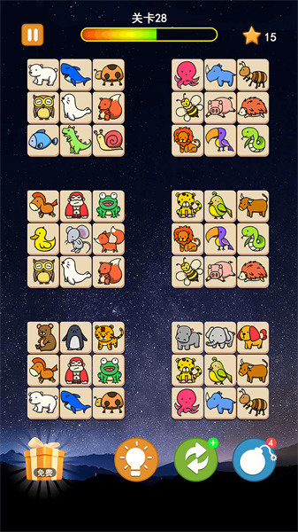 4.宠物连连看经典游戏中有上百个关卡,海量的关卡,各种精彩的战略挑战设计,各种精彩的障碍,更是极具挑战性!
