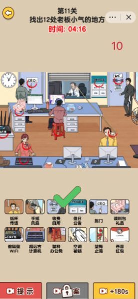 2、每一关都有独特的梗点,找茬的过程中捧腹大笑。