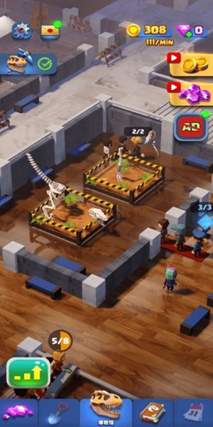 2、收集到的恐龙化石数量越多,就会招引更多的游客,带来收益。