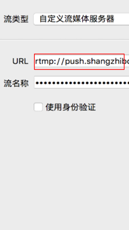 13.在 OBS 中的URL里,填写刚才复制的流媒体地址后就可以直播了。