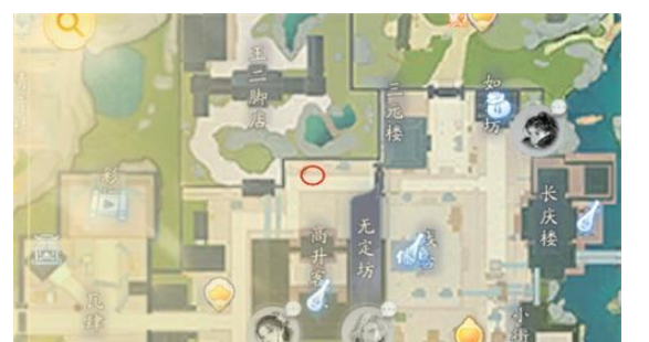 2.射雕游侠任务二:第二个游侠任务在勾栏对面楼梯旁接取,下图红标处。