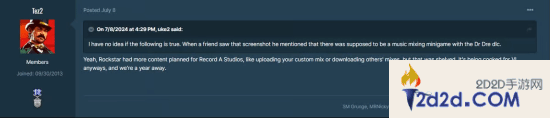 Record A Studios是《GTAOL》中由NPC“Dr Dre”所拥有的一个录音室,Tez2声称:“Rockstar曾为Record A Studios规划了更多内容,比如上传你的自定义混音或下载他人的混音,但这些都被搁置了。”他补充说:“总之该玩法正准备亮相《GTA6》,而且还有一年的时间。”