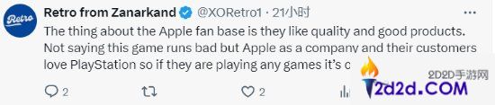 有玩家分析道,苹果的粉丝普遍喜欢高质量的产品,和PlayStation的用户画像高度重合,他们想玩游戏的话大概率会在PS5上面玩。