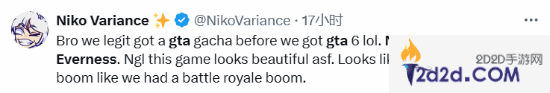 “兄弟,我们在玩《GTA6》之前就已经玩到了二次元GTA哈哈哈,《异环》这游戏看起来非常棒。看起来二次元热潮要来了,就像之前大逃杀热潮一样。”