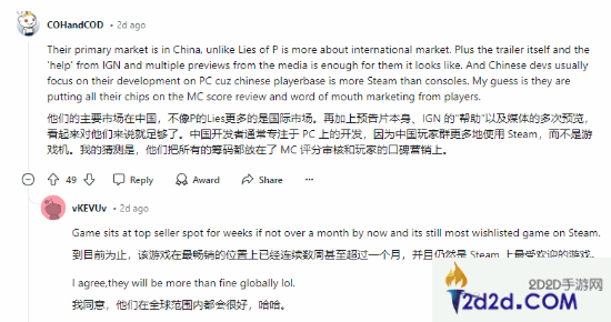 对此,有网友回应表示,《黑神话:悟空》的主要市场在中国,不像《匹诺曹的谎言》针对国际市场。再加上预告片本身、IGN的“帮助”以及媒体的多次试玩,这对他们来说就足够了。中国开发者通常专注于PC开发,因为中国玩家用steam的更多,主机占少数。开发者们可能把所有的筹码都压在了MC评分以及玩家口碑上。
