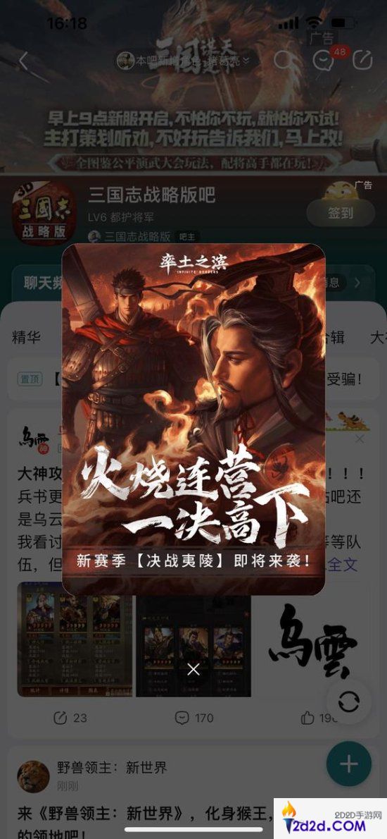 据贴吧玩家反馈,在目前的三国志战略版贴吧中,确实存在竞品游戏的广告,PC端、移动端均有投放,在移动端甚至是无法忽视的弹窗广告。