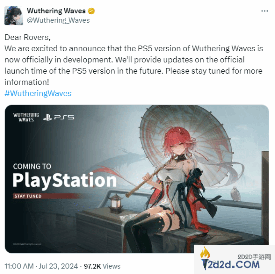 《鸣潮》官推今日宣布,游戏的PS5版本已正式进入开发阶段,发布时间等信息将在未来公布,敬请期待。